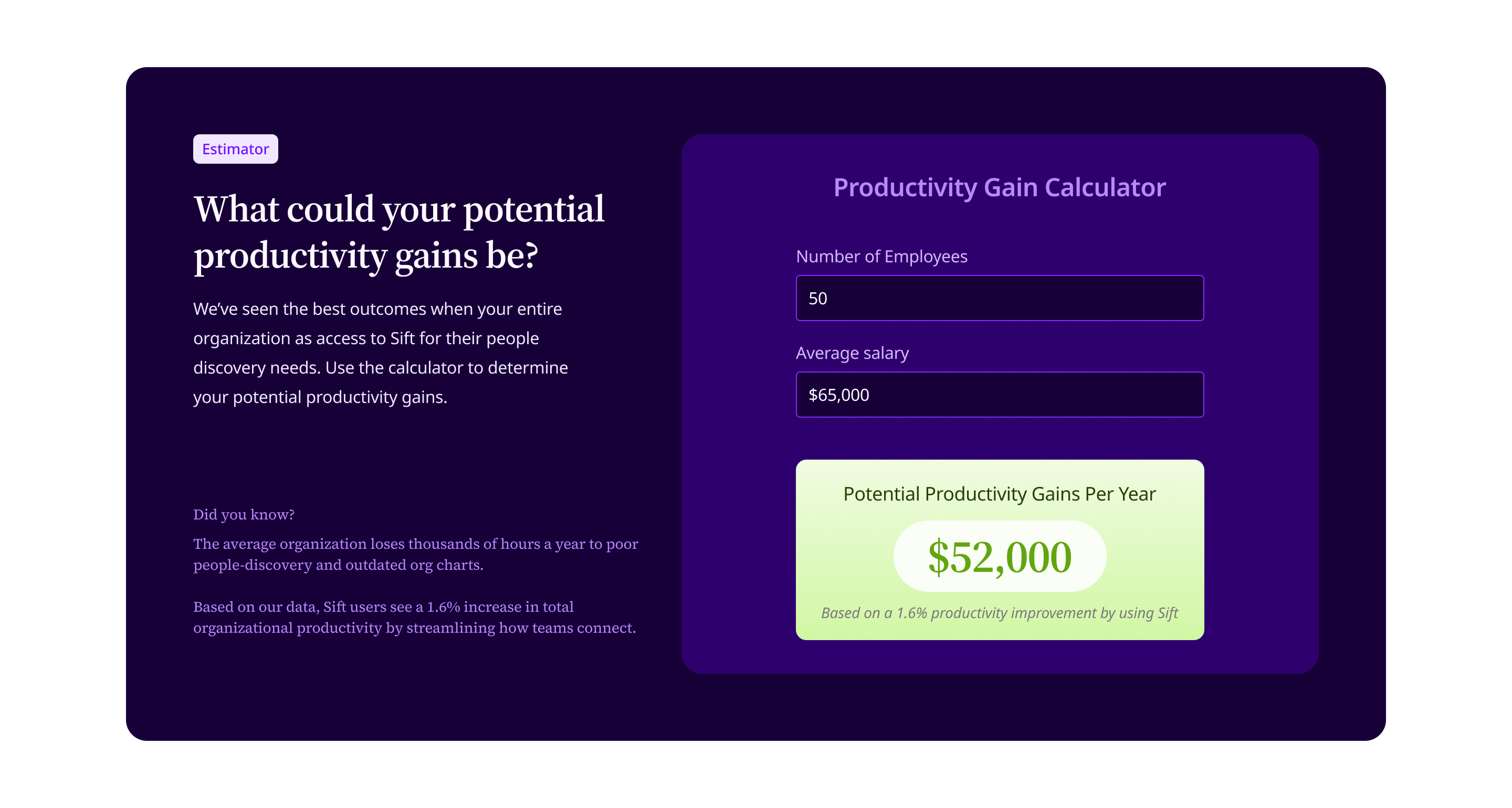 Sift’s Directory is a catalog of your org, making it easy to find and connect with colleagues, locate internal projects and initiatives, and navigate the collective knowledge and expertise of your people.