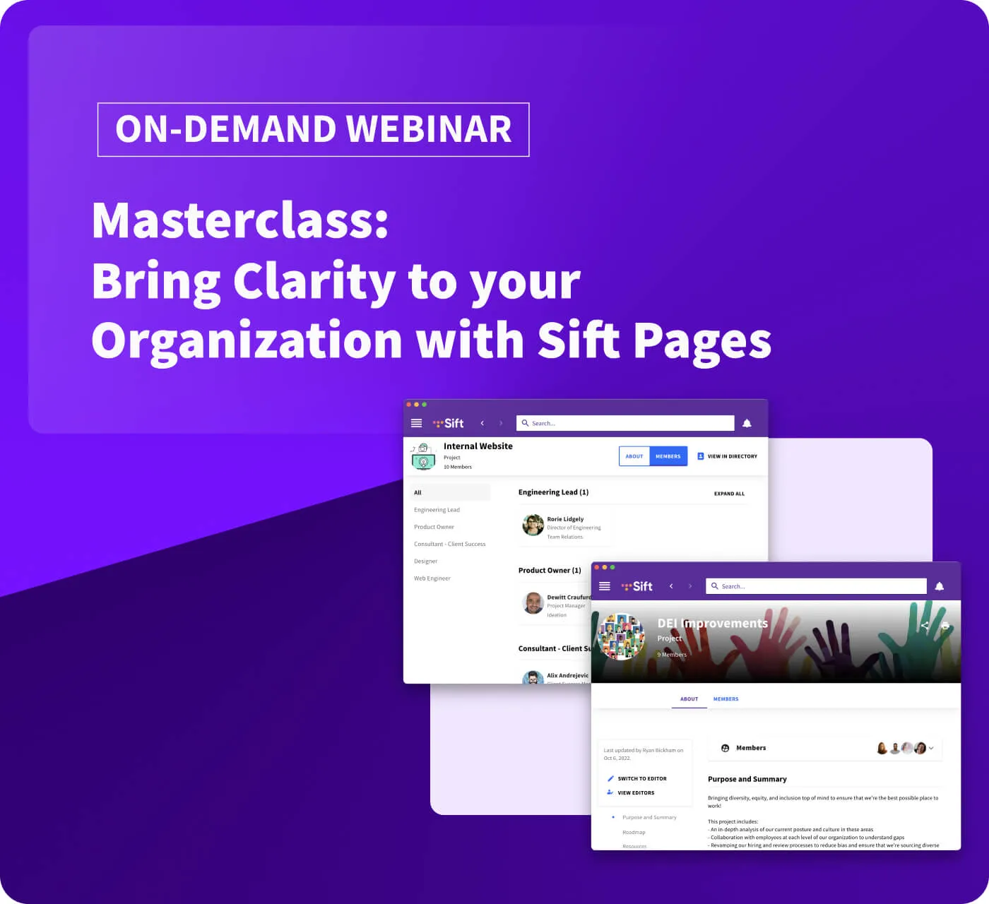 Sift's Vice President of Product Engineering, Ryan Bickham, will give an inside look at what our Product team is working on in the new year, such as; data sync improvements, demo data for admins, new org chart features.